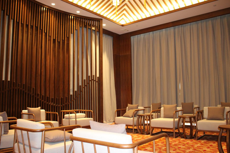 在會議場地布置方面,酒店按照海大集團(tuán)要求,配合團(tuán)隊將會場裝飾一新。從酒店外圍到會場充滿海大集團(tuán)企業(yè)文化核心元素標(biāo)識標(biāo)牌,會場搭配先進(jìn)的音響、燈光設(shè)備,營造出莊重而熱烈的氛圍。同時,酒店還在會場周邊提前準(zhǔn)備了多個貴賓接待室和休息區(qū),方便參會人員進(jìn)行分組討論、商務(wù)洽談以及休息放松。